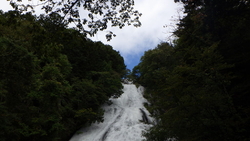 湯滝の豪快な流れにしばし圧倒されました。どうどうどうと、だい迫力のある、その流れ落ちる様は正に奥日光の秘宝ですね。階段を上がると、滝の流れ落ちるてっぺんまで観賞する事ができます。かなり急な階段で、体力的には疲れますが、登り切った所で、湯滝の頂上を観賞する事ができます。 (訪問:2025/10/18)