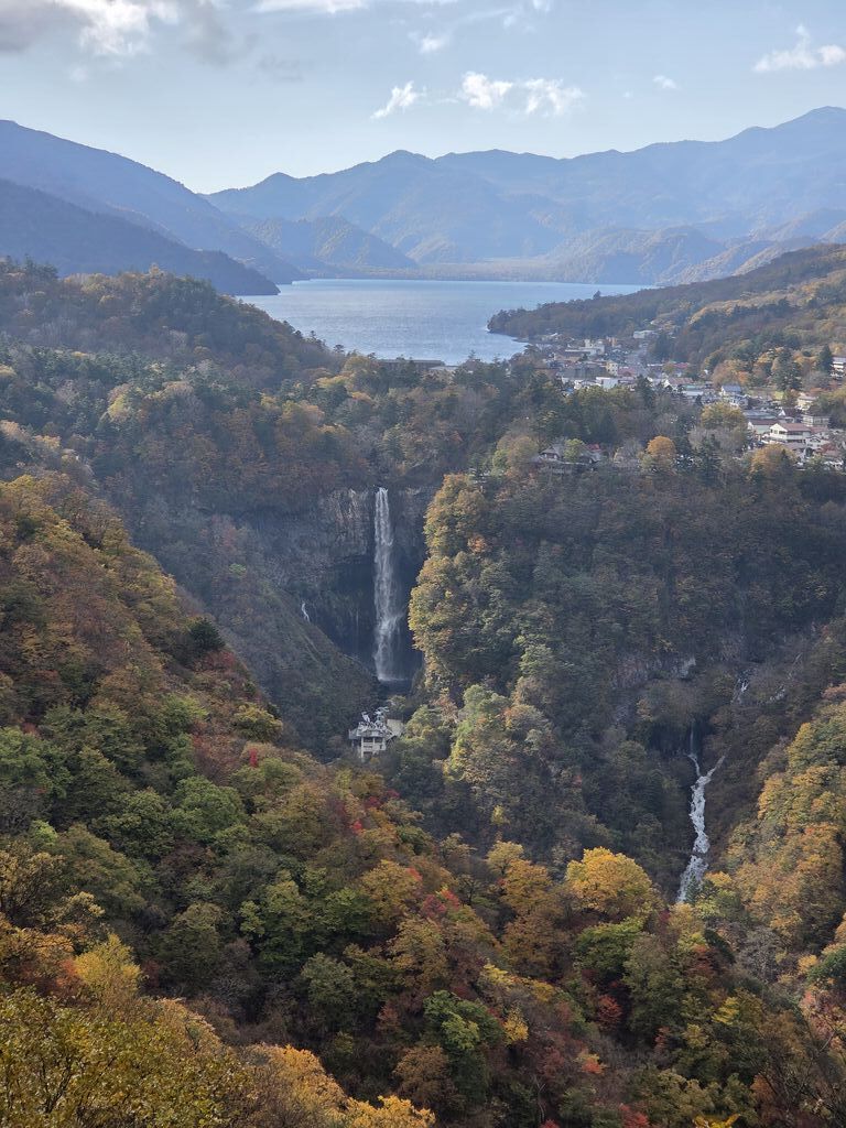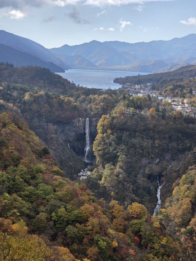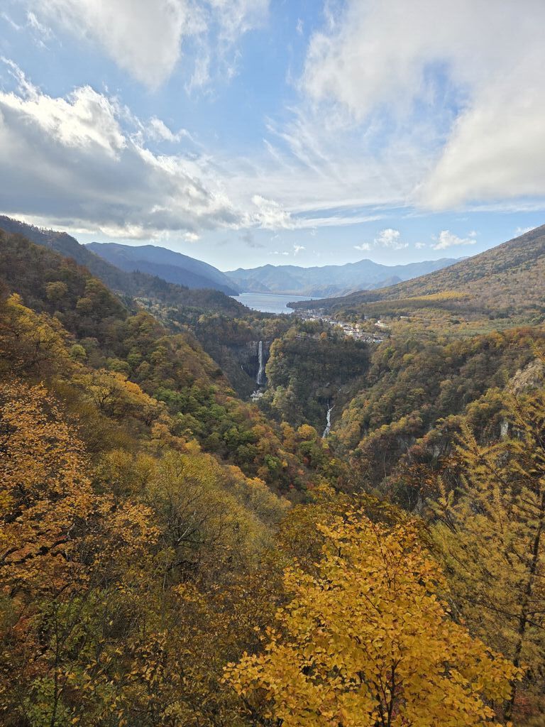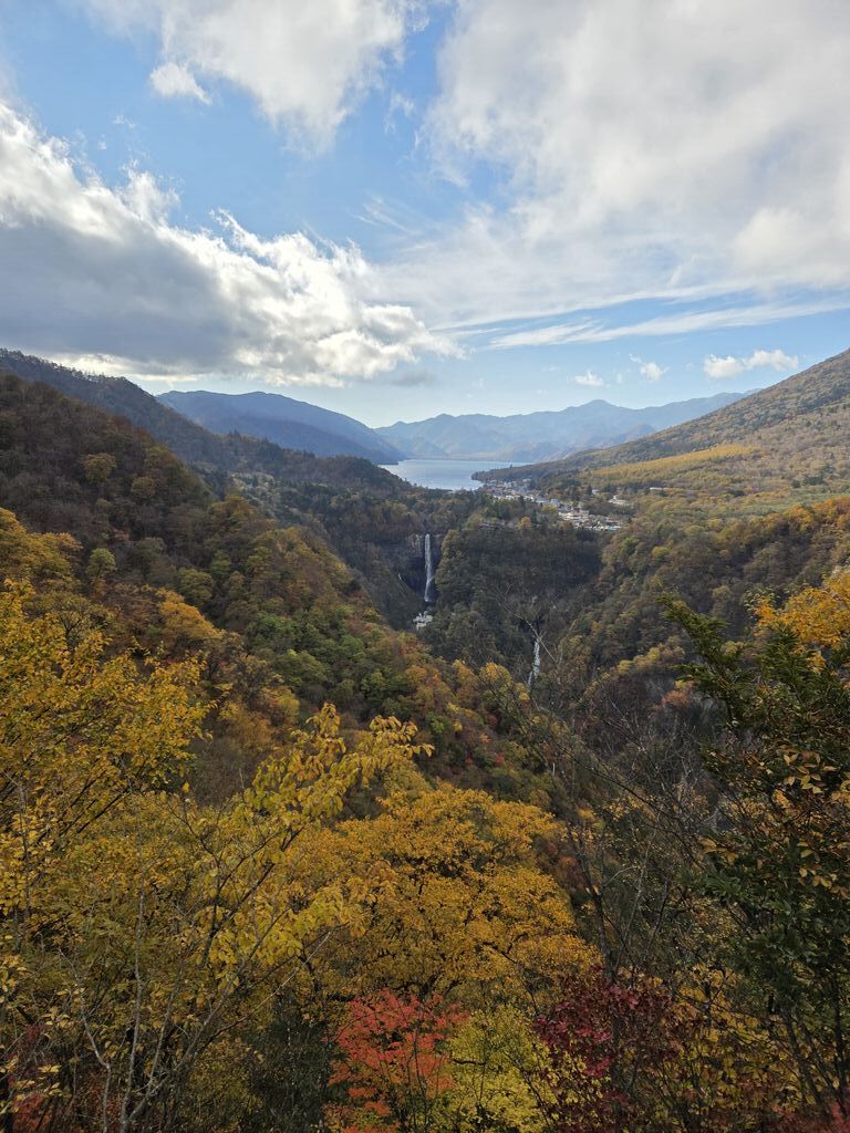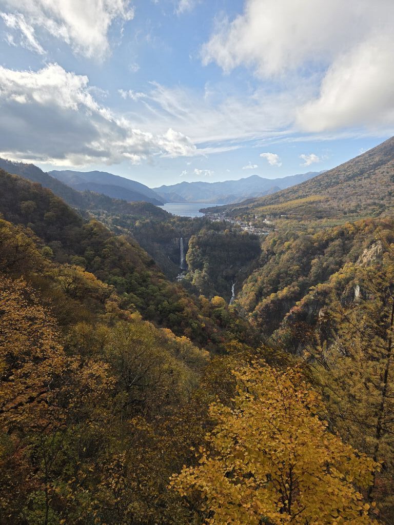 久しぶりに明智平から、男体山、奥日光の山々、下りのいろは坂を観望致しました。ほんとに、小さく滝が見えますね。壮大な景観に暫し感動致しました。外国人観光客が沢山観光に来ていまして、記念撮影をしていました。昔と比べて、外国人観光客の数が大変増えましたね。 (訪問:2025/10/19)