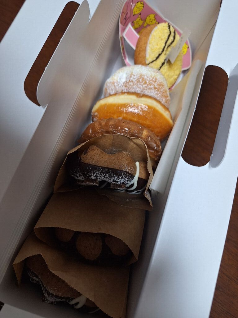 期間限定のポケモンドーナツは、見つけたらつい買いたくなります☆思わず食べるのをためらってしまうくらい愛らしいドーナツ達です♪今回は“ザクザクピカチュウのしっぽドーナツ”を購入。王道の“オールドファッション”は、ハニーがお気に入り。ポン・デは、生チョコショコラに濃厚ショコラカスタードをチョイスしましたが、種類豊富でどれも食べたくなっちゃいます(^ー^) (訪問:2025/11/29)