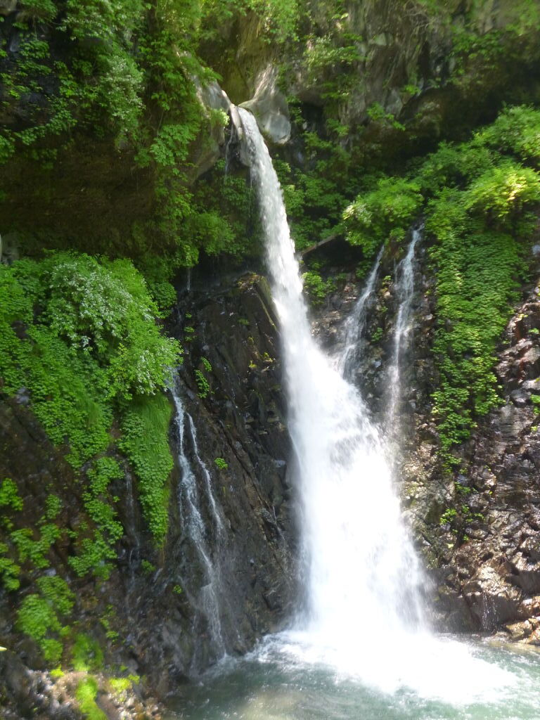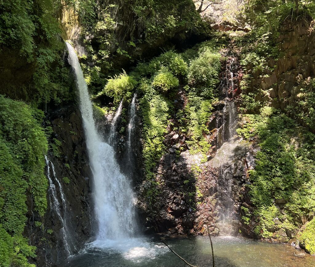 この迫力がある滝に感動して、滝を見に行くことが多くなったきっかけになったところです。駐車場にはトイレも完備されていて徒歩で約15分。滝までは岩盤が迫って注意がいるところもありますが遊歩道はあります(滑りにくい靴で行かれてください)。観漠台まで大谷川支流の荒沢川に沿って木々に隠れていますが、いくつかの滝がみられる所もあり、森林浴と一緒に涼しさもたくさん感じられて素敵な散策が出来ますね。 (訪問:2022/05/30)