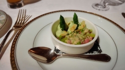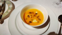 40年続いてるお店で、先月から息子さんの代になりメニューや料金を一新したそうです。ディナーで初めて伺いました。Aコース¥9400(サービス料10%別)を予約しました。皆さんの口コミの通り、目で楽しむお皿がありました。そして3種のプチシュー、アスパラのムース・フォアグラソース、ホタテのポワレ・花ズッキーニの魚の詰め物、かぼちゃの温かいスープ・那須高原のモッツァレラチーズ添え、鯛の魚料理、口直しはヘベスといってかぼすと柚子の間って感じでさっぱりでした。メインは足利マール牛のバラの花びら、コンソメスープ仕立てと羊のローズマリー燻製を選びました。全て見た目が華やかで食べていて楽しめました。もっとすごいのがデザートです。ワゴン2台にケーキやコンポート、ジェラートがのっていて好きなのをどうぞと。迷ってしまったので全てを少しずつ分けてもらいました。12種類もあって一気にお腹がいっぱいになりました。他にもオレンジピールとマシュマロや、お土産にとオレンジのパウンドケーキもいただきました。とても満足しました。 (訪問:2024/09/23)