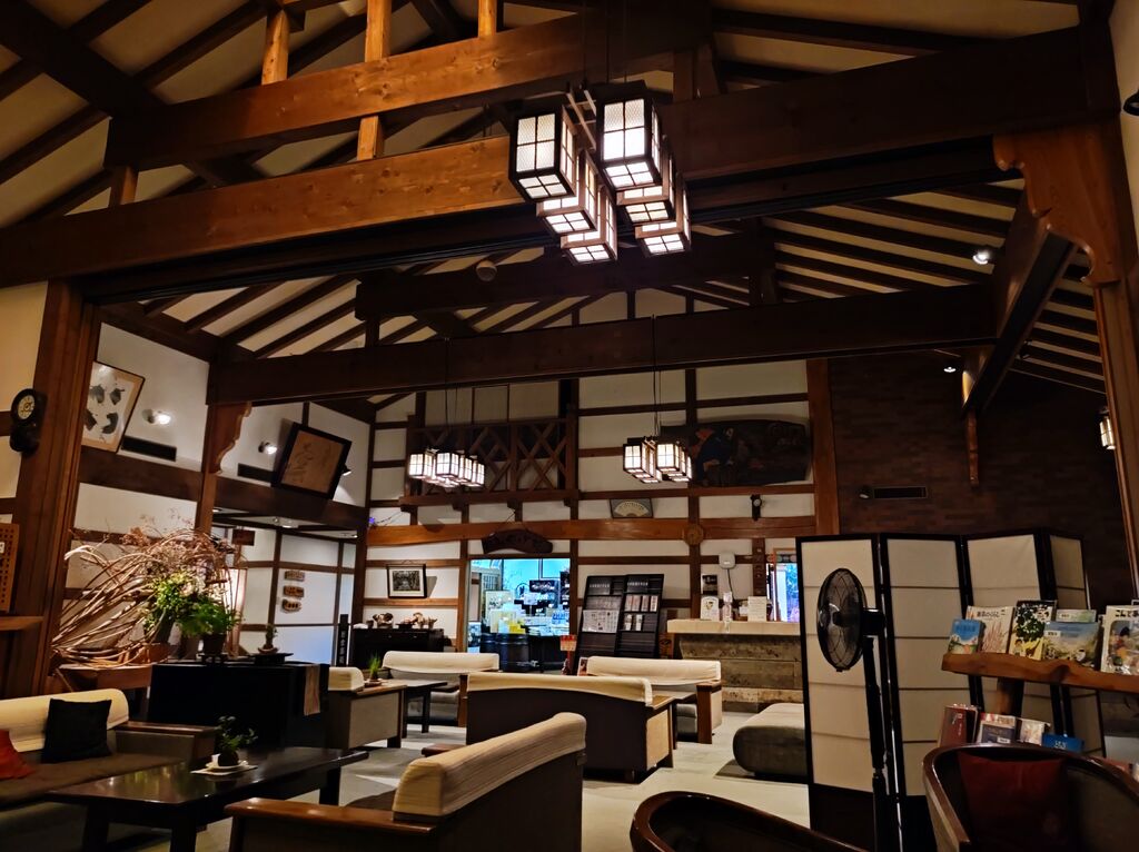 | ◇落ち着いた佇まい 天然木を贅沢に使用し、木の香に包まれた豪壮な館。 |