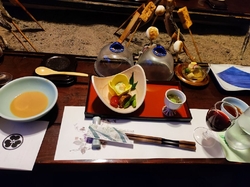 | ◇囲炉裏焼き 囲炉裏端にて、串焼きをはじめとする山の幸・川の幸の季節料理を満喫できます。 |