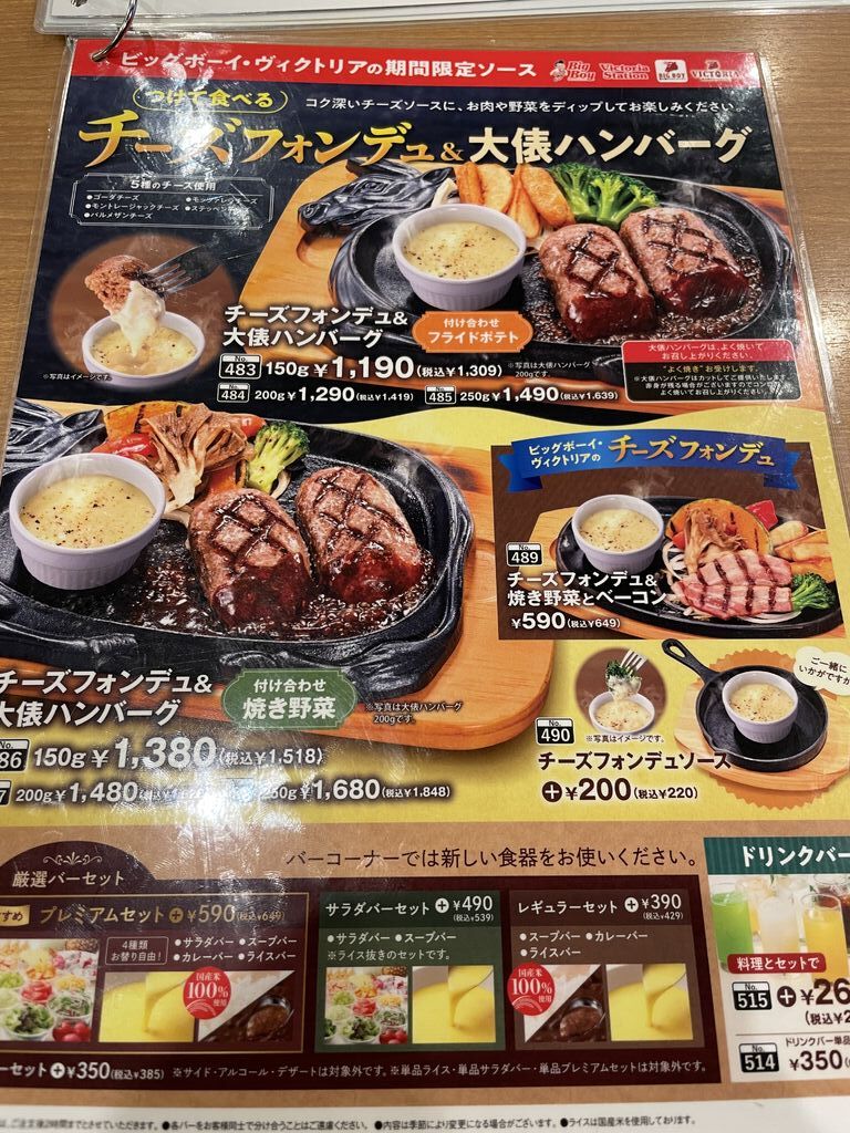 NEWビッグボーイは定期的に企画メニューが出るので飽きがこないです。1月はチーズフォンデュ俵ハンバーグです。ハンバーグや付け合わせ野菜を溶けたチーズにディップして食べる趣向。チーズ掛けハンバーグとは違い、チーズを絡める量を自分で調整出来るのが嬉しくて旨いです。チーズを絡めた焼き野菜も旨い。チーズの濃厚さで食べ応えも有ります。大満足^_^ (訪問:2026/01/26)