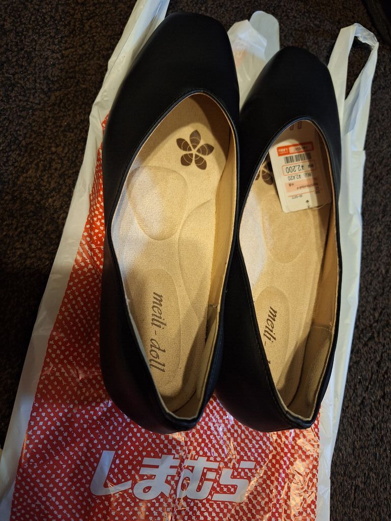 久し振りの急な葬儀で、履こうと出した黒いパンプスの劣化に気付き、慌てて買いに行きました!合わせやすいシンプルなデザインで、ヒールが低くクッション性があって疲れなくて、LLサイズでゆったり履きやすい靴が見付かり、2420円とお買い得で良かったです。キャラクターの、可愛いクロミちゃんのスリッパも発見!洗えちゃうので重宝します(^ー^) (訪問:2025/10/04)