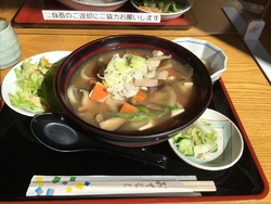 道の駅でお昼ご飯をたべようとなり私と母はお蕎麦が良かったのですが子供たちはカレーがいいと言うのでこちらにお邪魔しました。私はけんちんうどんを食べました。里芋や大根人参きのこ豚肉ごぼうといった野菜が沢山入っていてとても食べ応えがありました。子供達が食べていたカレーは素揚げしたナスやパプリカ かぼちゃなどの野菜が乗っていて美味しそうでした! (訪問:2022/10/30)