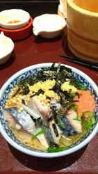 NEWひとりでの夕食の日だったので、こちらに来店です。もう着席した途端「これに決定」と、期間限定の【しめ鯖おひつ】をタブレットでオーダー【3種の小鉢】も一緒に。セルフでお出しもいただけるので2杯程飲みました。これがめちゃくちゃ美味しくて美味しくて。内臓も温まり香りも味も絶品。鯖がたっぷり乗っていて大満足の量。食欲増進です。最後の最後は、ぜーんぶ乗せて出汁も沢山かけて締めました。海苔やら葱やら、あられやら沢山乗せて満腹感半端ないです。出汁だけで出汁茶漬けだけでも食べたいぐらいホントに美味しかったぁ~。凄くオススメです。 (訪問:2026/01/31)