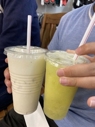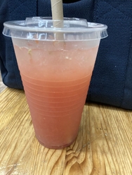 買い物帰りに新鮮なフルーツジュースを頂きました。私は【フルーツミックス】をレギュラーで注文。暑かったので、氷は入れてもらいました。帰りの車の中で飲む予定でしたが、ひと口飲んだら、止まらなくなり車に着いた時には飲み切っていました。 (訪問:2025/08/25)