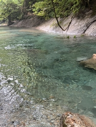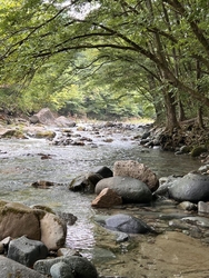 9月に入っても暑い日々。涼を求めて、木の俣渓谷に行ってきました。初めて訪れたのですが、駐車場も水辺もいっぱい。特に県外から来られている方が多く、そんな有名スポットだったんだぁ、と驚きました。水が冷たく澄んで、少し深いところに光がさすとエメラルドグリーンに♪本当に美しい風景でした。涼しい木陰で休む人、足もとだけ入る人、全身ドボンとつかる人、ゴムボートを浮かべて遊ぶ子供や、気持ちよさそうに泳ぐワンちゃん、みんなとっても幸せそうでした♪ (訪問:2025/09/06)