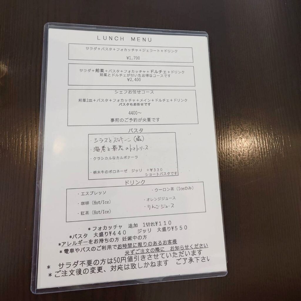 ちょっと一息つきたくて、おいしいお料理をやさしい笑顔で丁寧に接客してくださるこのお店を再訪しました。予約して伺いましたが扉には予約で満席との表示が出ていました。時間がなかったので、一番少ないメニューにしました。それでもサラダ、パスタ、ジェラート、ドリンクがついていて、1500円程度でお得です。 どれも素晴らしくおいしく、また、とくにジェラートのチョコレートが絶品でした。おいしい珈琲が出てくると嬉しくなります。癒されるひとときでした。ごちそうさまでした。 (訪問:2023/12/21)