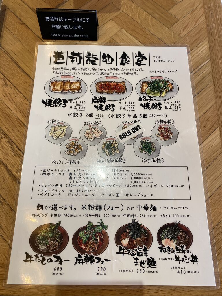 平日の11時前に入店、すでに賑わっていましたが、待たずに案内してもらえました。焼き餃子と牛だしのフォーを注文。餃子は少し大きめで、ひき肉では無く6〜7mm角のゴロッとしたお肉が入っているのでジューシーで食べ応えがあります。餡がお肉メインなので、店員さんお薦めの酢胡椒で食べた方が美味しさが引き立つ感じがしました。フォーはやさしい味でした。食べてる間にお客様が次々と来店、待ちの人数が増えて行きました。テーブルでお会計するのは、珍しいと思いました。 (訪問:2025/12/02)