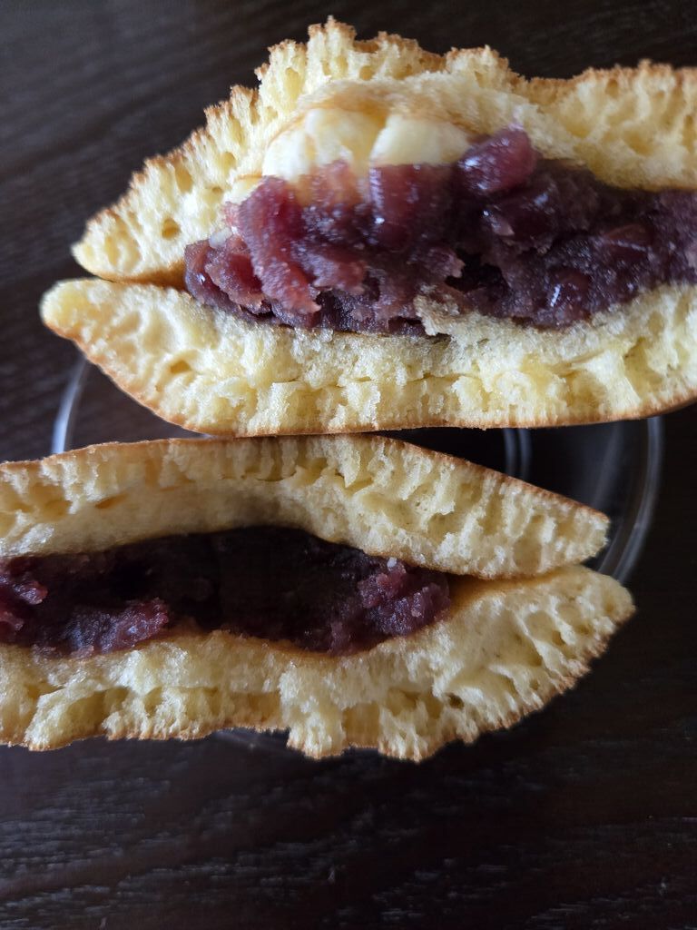 工場直売店なので、作っているお菓子の甘い香りが駐車場の外まで香っていました。それだけで、なんだか笑顔で幸せな気分になってしまいます。この日は、ちょうど賞味期限が当日のお買い得品を発見。バターどら焼きです。レジ前に2個あって、2つとも購入。自宅でブラックコーヒーともにいただきました。まず、見た目が普通のどら焼きより大きめ。皮は、しっとりとしていて、中はつぶあん。真ん中にバターが挟み込まれていました。つぶあんとバター。合わないわけがありません。バターの塩味とあんこの甘さが最高の組み合わせです。美味しいものをいただいて、とても幸せなひとときを過ごせました。 (訪問:2025/12/22)