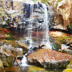 昨年晩秋に来ましたが緑のあるこの時期に来てみました。まだ紅葉は早かったのですが、水量がある素敵な滝を見ることが出来ました。林道赤滝線を進むと大きな木(もみの木?)がありそこに駐車しました。前回は気づかなかった滝の近くにある(滝つぼ近くの川の反対側にある)赤い鳥居と祠を見つけましたが、滝の神様?を祀っているのでしょうか?残念ながら川を渡ることが出来ないので確認できませんでした。道路から降りる階段や岩のところは、苔や落ち葉が多く滑りやすいので見学の際は充分ご注意ください。 (訪問:2021/10/14)