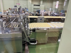 | 工場見学(1F・2F) | 1Fでは人気1位の「御用邸の月」、2Fではパイやクッキーなどの洋菓子を作っている様子がガラス越しに見学できます。 |