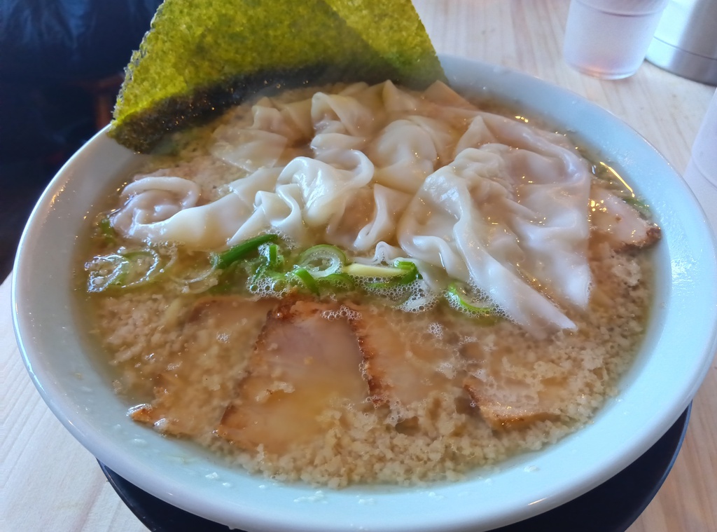 移転したときいて新店舗に行ってきました。タイミングが良く待たずに席に着けました。今回もワンタンメン(こってり)を頂きました。こってりは背脂がのりますが、元々のスープがかなりあっさりなので丁度よい味付けだと思います。ワンタンは6個とボリュームもあります。栃ナビさんのクーポンでチャーシューをサービスしてもらいました。 (訪問:2025/12/29)