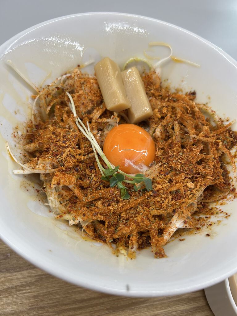 NEW久々に伺ったら券売機がありました!何を食べるか写真を見ながらワクワクできます。そんな中和え麺に釘付けに。スパイスが効いていそうなピリ辛な見た目通り、スパイシー!麺が刀削麺のようで、平たいピロピロ麺が好きな人にはドンピシャ(^^)歯応えもありとっても食べ応えあり。鶏白湯はタンドリーチキンが入っていて後半はスープにカレー風味が加わって、また違う雰囲気に。毎回驚きがあり楽しく美味しいお店です! (訪問:2026/03/13)