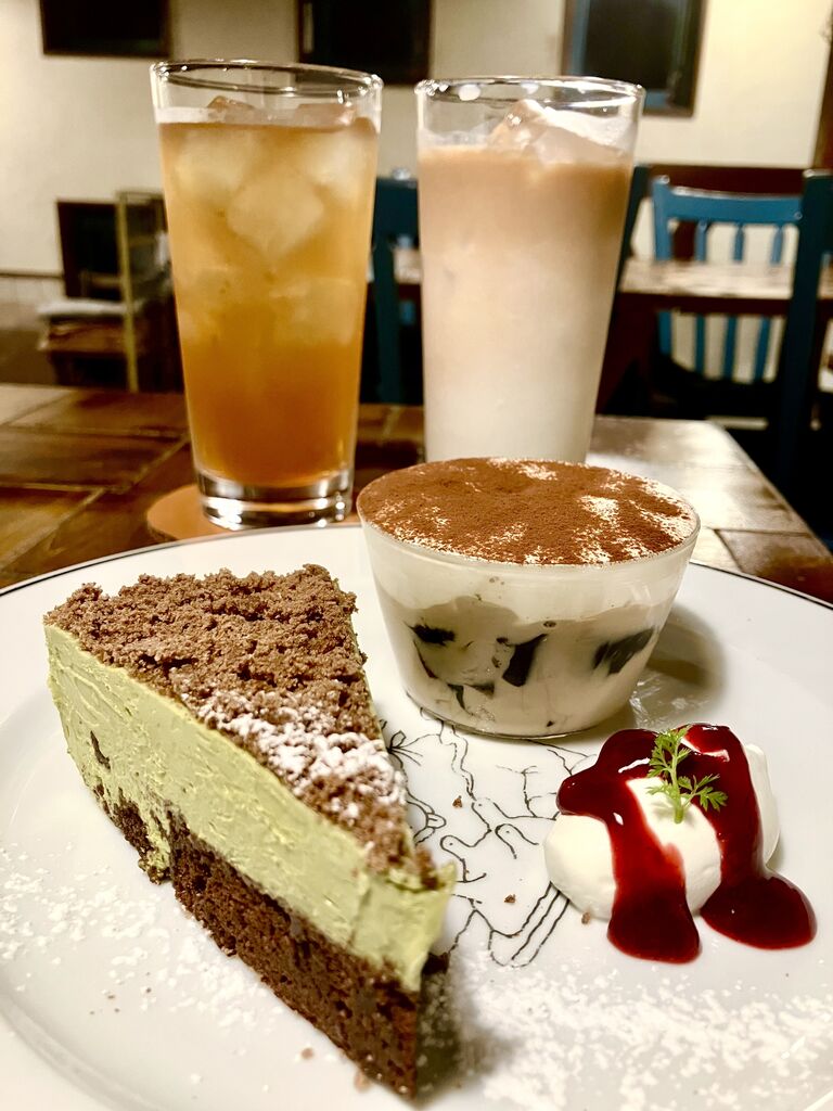 NEW夕方から夜へと移り変わる頃に伺いました。窓に映るなんとも云えない美しいブルーを眺めながら身体に優しい夕食をいただきました。サムゲタンとジャガイモのグラタンのようなプレートをチョイス!アイスティーとアイスロイヤルミルクティーに新登場の抹茶ケーキ(取り置き)とチーズケーキは、テイクアウトしました。オニオンスープもジャガイモのグラタンも優しい味のサムゲタンもとっても美味しかったです♪連日行きたいくらい❣️身体に優しく沁み渡るんです!食材の素材そのものもいいんだと思います(^^) (訪問:2026/02/27)