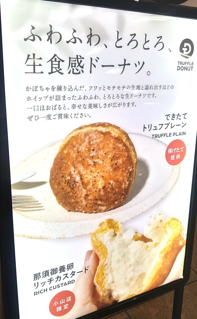 NEW美味コレクションの催事で、以前伺いとても美味しかったTRUFFLE DONUTさんで、季節限定モンブランとリッチカスタードを購入しました!モンブランは中にモンブランクリームがたくさん入って、リッチカスタードは濃厚なカスタードがたくさん入って、それぞれ甘さ控えめで、生地もふわふわで、とても美味しかったです!名物の揚げたてトリュフドーナツも塩見があり、他に無い美味しさです!他にも美味しいお品がたくさん揃っている催事で、充実していました!お店様迄お伺いしなくても、色々購入出来るのはありがたいですね。素敵な催事をありがとうございました! (訪問:2025/10/27)