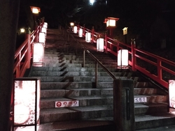 NEW階段に行儀良く並んだ足利銘仙柄の行燈(o゜▽゜)o☆ 鑁阿寺にも、足利学校にも設置されていたけれど、織姫神社で撮影しようと思って来ましたヾ(≧▽≦*)o まぁこの階段が段数もあり、結構疲れます( ╯□╰ ) 案の定、翌日も、翌々日も、バリバリの筋肉痛Σ( ̄ロ ̄lll) しかし神社まで辿り着けると達成感がスゴイ(@ ̄□ ̄@;)!!! そして、暗闇に浮かび上がる神殿が艶やか(⋈◍>◡<◍)。✧♡ 参拝もさせていただき、心も整ったかな°˖✧◝(⁰▿⁰)◜✧˖° 満ちていくエネルギーをパワーに変えて、自分も凛として生きていきたいデス(⋈◍>◡<◍)。✧♡ (訪問:2025/11/13)