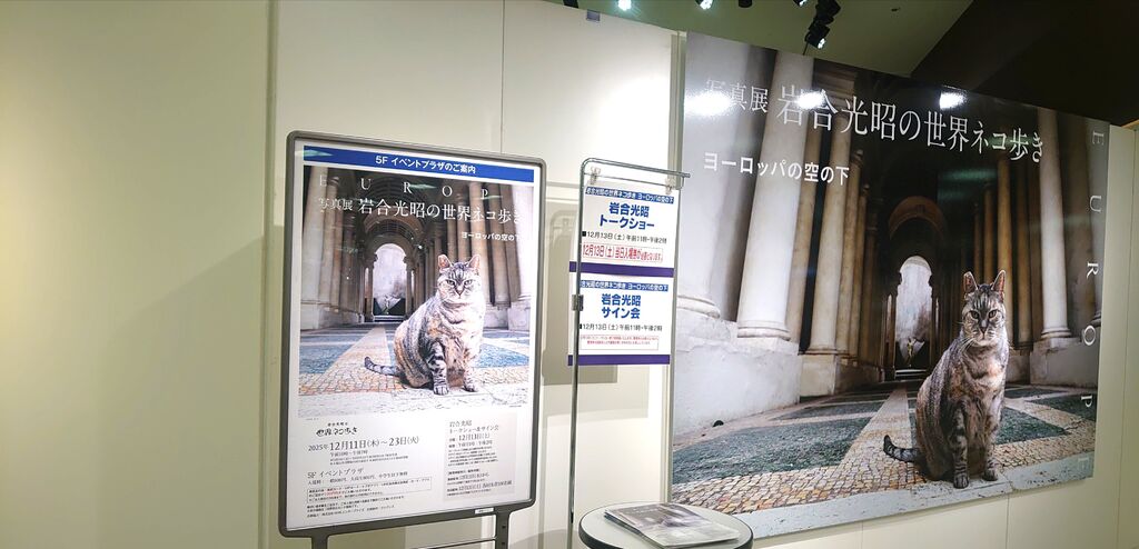 とても楽しみにしていた、岩合光昭さんの【世界ネコ歩き~ヨーロッパの空の下~の写真展】に行って来ました!ラインでチケットも当たったので、ラッキーでした!今回ヨーロッパのネコちゃん達の可愛らしい写真がたくさん展示されていて、とても微笑ましく、優しい気持ちになりました!岩合さんのお言葉で、ネコちゃん達は、自然と一体化していると言う事が伝わる写真展でした!素敵な写真展を出ると、ネコちゃんグッズが色々販売されています!岩合さんのフォトポストカードや、バッチ、スタンプ等色々、観ていて楽しい気持ちになります!気にいったポストカードを、一枚購入しました!素敵な写真展を本当にありがとうございました!ネコ展は23日迄です!(写真展内は、撮影不可)ネコちゃん好きな方、是非行かれてみてください! (訪問:2025/12/12)