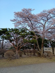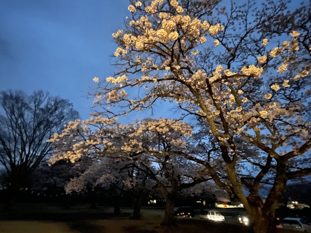 ライトアップされた夜桜を見に行くつもりが、ライトアップは終わってしまっていて、普通の街灯で照らされた桜を見ました。街灯の色により桜の色も変化して幻想的。人も疎らでゆっくりと花見を楽しめました^_^ (訪問:2025/04/14)