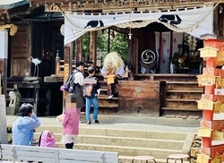 境内に入ると、笛や太鼓の音が鳴り響き子供達が何かをいただいている様子で、後から調べてみると、『太々神楽祭』でした。福神社にて神楽師が神代の神話をテーマにした約12座の太々神楽を奉納。岩戸開きが有名‼︎また、境内から山の方へ歩いて7分程の所にある奥宮でも『奥社満願祭』が行われており、特別な日に遭遇しラッキーでした✨三輪神社の上の方には、ツツジが咲き出して綺麗でした。青い空、白い雲、新緑と鶯の鳴き声が時折りして清々しい日でした。 (訪問:2026/04/19)