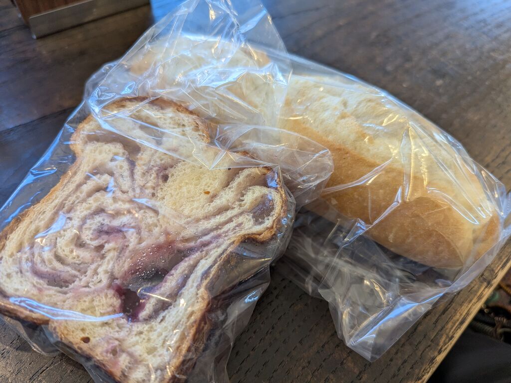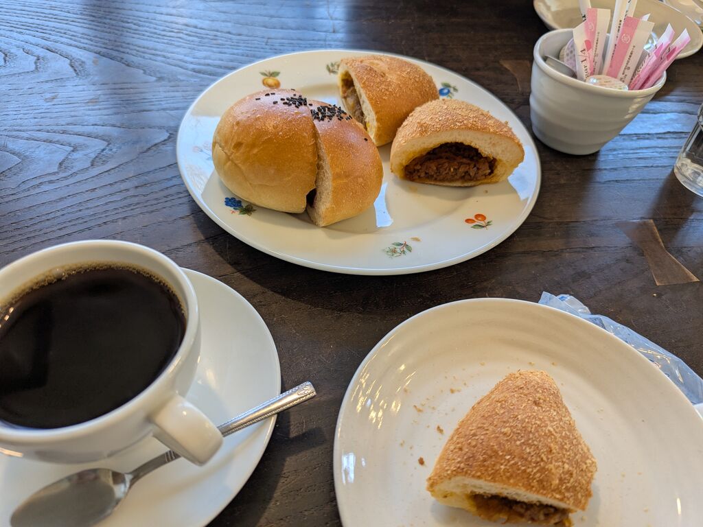 車で、前を通る度に気になっていた「那須あんぱん」の暖簾……行ってきました!実際の店名は「パンドゥルアン」というのも初めて知りました。美味しそうに並ぶ中から、那須あんぱんなどいくつか買い求め、半分を店内のイートインスペースでコーヒーと共に頂きました。少し温めて、食べやすく切って頂き、のんびりゆったり美味しく頂戴しました。ご馳走様でした。(最後の写真は、お店にあった仲良しカエル達) (訪問:2026/03/09)