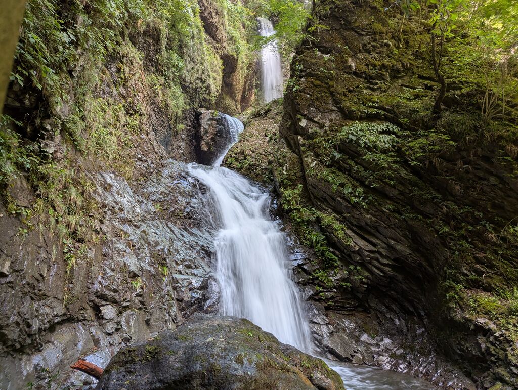 暑い日が続いていて涼みに行きたいなぁ~、マイナスイオンを求めに~って思って山の方へと【竜化の滝】へ行って来ました(笑)無料の駐車場に停めて入り口階段から上がって行きSTART!ちょっとした橋を渡ったり、道幅の狭い所を通ったり、小さな滝を渡ったりとスリル満点ではあったけど川のせせらぎを聞きながらと楽しみながら散策し竜化の滝に辿り着きました(笑)滝を見た瞬間、感動で滝の流れる景色や音に圧巻され数秒間 時が止まった感じでした。三弾になっている滝は迫力があり見応えあるので、行ってみる価値はあると思います٩(ˊᗜˋ*)وちなみに~暑さを忘れる位鳥肌が立って寒かったです(笑) (訪問:2025/07/31)