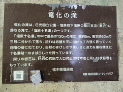 | 100余りあるといわれる塩原の滝の中でも特に美しい滝を「塩原10名瀑」と呼んでいますが、竜化の滝はその筆頭に挙げられています。 |