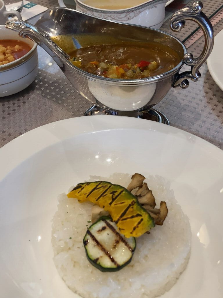 友人とランチしました。選べるメインディッシュにサラダバー・スープバー・ドリンクバー・本日のデザートがつくセットから【チキンピラフ チキン・ア・ラ・キング風(1800円税込)】を選びました。メインのチキンピラフは別添えでチキンのフライも付いていて食べやすいです。スープも3種類あってコーンスープが美味しかったです。サラダバーのものが少なくなるとすぐに補充してくれてありがとうございます。 (訪問:2025/06/24)