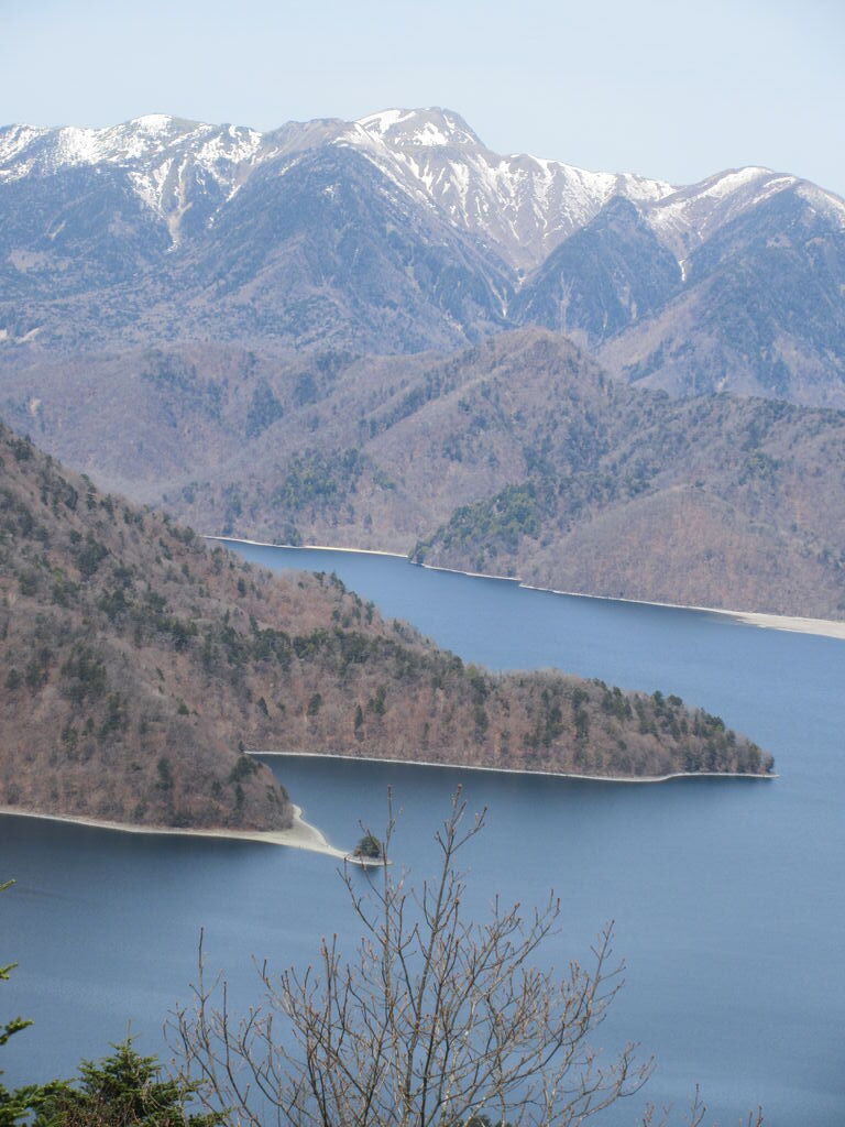 最近中禅寺湖の水位が低いと報道されていましたが、高いところ(半月峠へ行く途中)から見ると浜が見えてよくわかります。普段は湖の中にある湖南部の上野島(島の中央には勝道上人の首骨納塔と慈眼大師の墓石があるそうです)が陸続きになってしまい、華厳の滝も水量が少ないとのこと。今日から中禅寺湖遊覧船の2026年度営業開始です。 (訪問:2026/04/18)