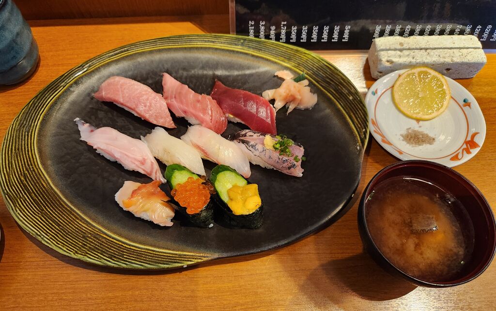 念願叶って初来店。ずっと行きたかったので期待大です。栃ナビポイントの割引を使わせて頂きました。握りが食べたかったので【よくばり寿司定食】を注文。サラダと茶碗蒸しが食べ終わる頃お寿司登場、丁寧な仕事してくれてます、シャリの大きさは私には丁度良く、握り加減も好みで美味しかったです。茶碗蒸しのお出汁と柚子の香りが最高、あら汁も臭みなく美味しかったです。お店の雰囲気、接客共に良かったので、また寄らせて頂きます。ご馳走さまでした。 (訪問:2025/11/19)