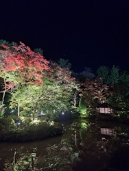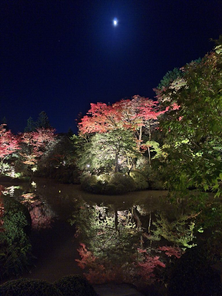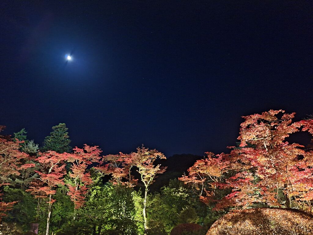 今年も紅葉とライトアップを楽しみに18時頃お邪魔しました。混雑覚悟でしたが、輪王寺の真ん前に車を停めることができひと安心。到着時には三仏堂をバックに太鼓の演奏がされており、キッチンカーもたくさんあって賑やか。入場券を購入していざ目的の庭園へ。入ると紅い紅葉と緑の木々が色鮮やかに照らし出されとっても綺麗で幻想的☆水面に反射する建物や紅葉もまた趣あって良いです~!ちょっと水が濁っていたのが残念ではありますが、それもまた面白いかも。月が良い位置にあり、紅葉とライトアップと月の共演も拝むことができて本当に良かった‼三仏堂でもきっちり参拝もできたし、仕事調整して半休とれて良かった~♪帰りがけにキッチンカーで行列を作っていた『肉巻きおにぎり(ねぎ塩)600円』をゲット。熱々ジューシーな美味しさで締めさせてもらいました^^ (訪問:2025/11/01)