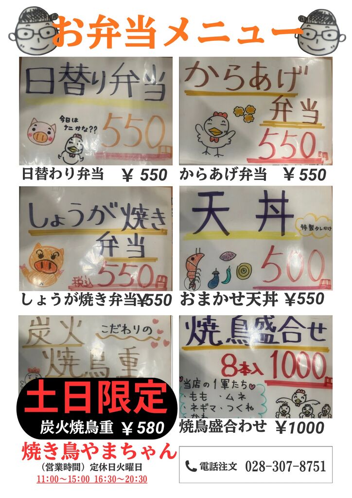 宇都宮市の焼き鳥・串焼き・やきとり・うどん・テイクアウト クチコミ8件 ヤキトリヤマチャンサヌキウドンドンウイザカヤヤマチャン 焼き鳥やまちゃん/ 讃岐うどんDONU/ 居酒屋やまちゃん 028-307-8751 028-307-8751 お気に入り クチコミする ネット予約する 基本情報 メニュー・クーポン クチコミ 写真 地図 最新情報 コース一覧 メニュー一覧 テイクアウトメニュー一覧 テイクアウトメニュー一覧 やきとりテイクアウトメニュー お得な焼鳥20本盛り合わせ 焼鳥20本盛り合わせ+唐揚げ+ポテト お弁当メニュー 焼鳥8本盛り合わせ1000円 コース一覧 メニュー一覧 テイクアウトメニュー一覧 栃ナビ! 栃木県のお店・スポット情報 食べる 居酒屋・バー 焼き鳥・串焼き 焼き鳥やまちゃん/ 讃岐うどんDONU/ 居酒屋やまちゃん テイクアウトメニュー一覧