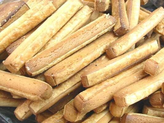 スティック状に焼き上げた、チーズ味のクッキー。優しい甘さと素朴な味わいが魅力。ほんのりと塩気があり、チーズの香りもおだやかなのが特徴で、チーズが苦手な方にも好評なのです(^^)v クッキー本体もサクサクとした食感ですが、側面にパイを貼り付けることで、さらに軽さがアップ! 止まらなくなるポテトチップのように後を引く、通に人気の商品です。
