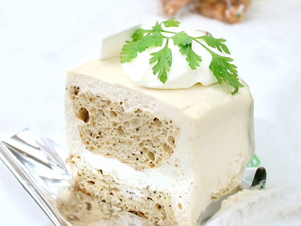 食感は瑞々しいほどにしっとりとして、水分を多く含み、とてもふわふ柔らかいのです。といっても、しっとりさせたスポンジとは全然違い、ぎゅっと身が詰まっています→