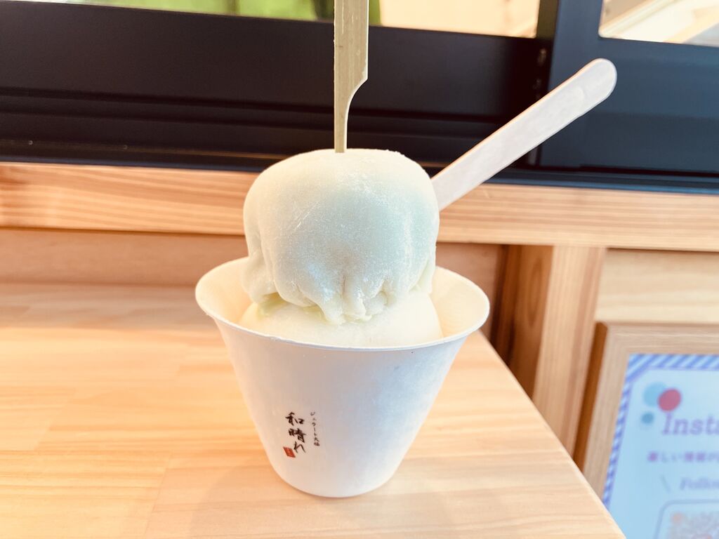 「和晴れ」には、“和”のスイーツを通して、食べた人の心を“晴れやか”にしたいという想いを込めています。故郷・秋田で育った素材を使ったジェラートを、やわらかな求肥で包んだやさしい味わい。広がる和の香りと、素材の豊かな風味をお楽しみください。