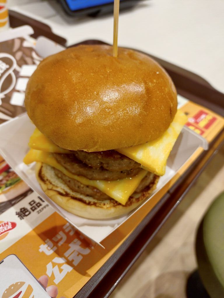 ゼッテリアにて、ボリューム満点の美味しいメニューをいただきました。今回は、いただいた美味しいメニューについて、お話をしたいと思います。いただいた美味しいメニューは、写真に掲載しました通り、トリプル絶品チーズバーガーにバケツポテトです。トリプル絶品チーズバーガーは、チーズ、パティともに美味しく、これだけでもお腹いっぱいになれるチーズバーガーです。バケツポテトは、香ばしく、美味しいポテトがまるでバケツいっぱいに入っている美味しいポテトです。いずれも、食べごたえが十分なメニューです。皆さんも、是非、食べてみてください。今回も読んでいただき、誠にありがとうございました。 (訪問:2026/01/29)