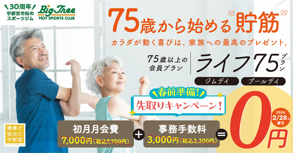 ビッグツリー桜本店フィットネスでは、75歳以上のシニアに嬉しい新会員種別が誕生しました!