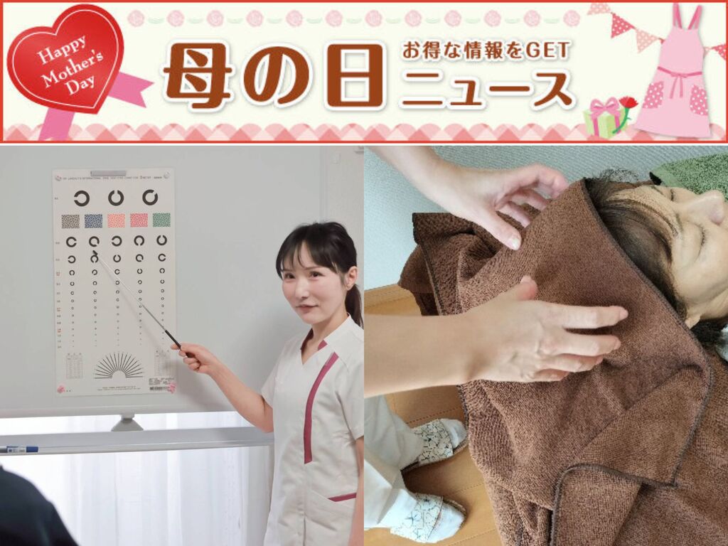 母の日ニュース 眼(視力、眼精疲労、ドライアイ)・あたま・小顔スッキリ♢体験してみて!クーポン各¥2,980(26/04/01) UP