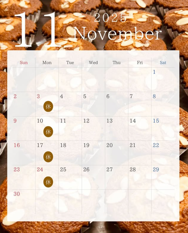 秋限定ニュース ◇11月の営業カレンダー◇(25/11/01)