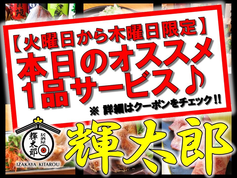 クーポン 【クーポン】 本日のオススメ1品サービス♪ ※火曜日から木曜日限定(26/02/07)