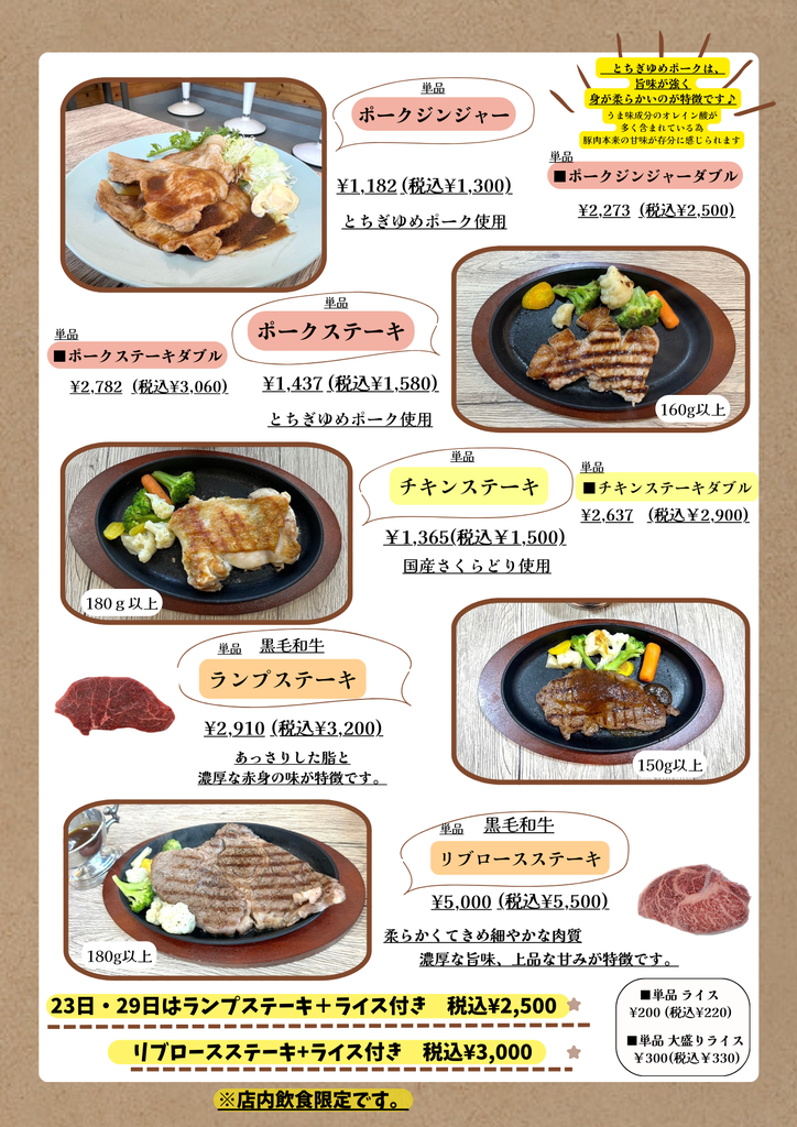 上三川町の餃子・定食・ステーキ・ハンバーグ・テイクアウト