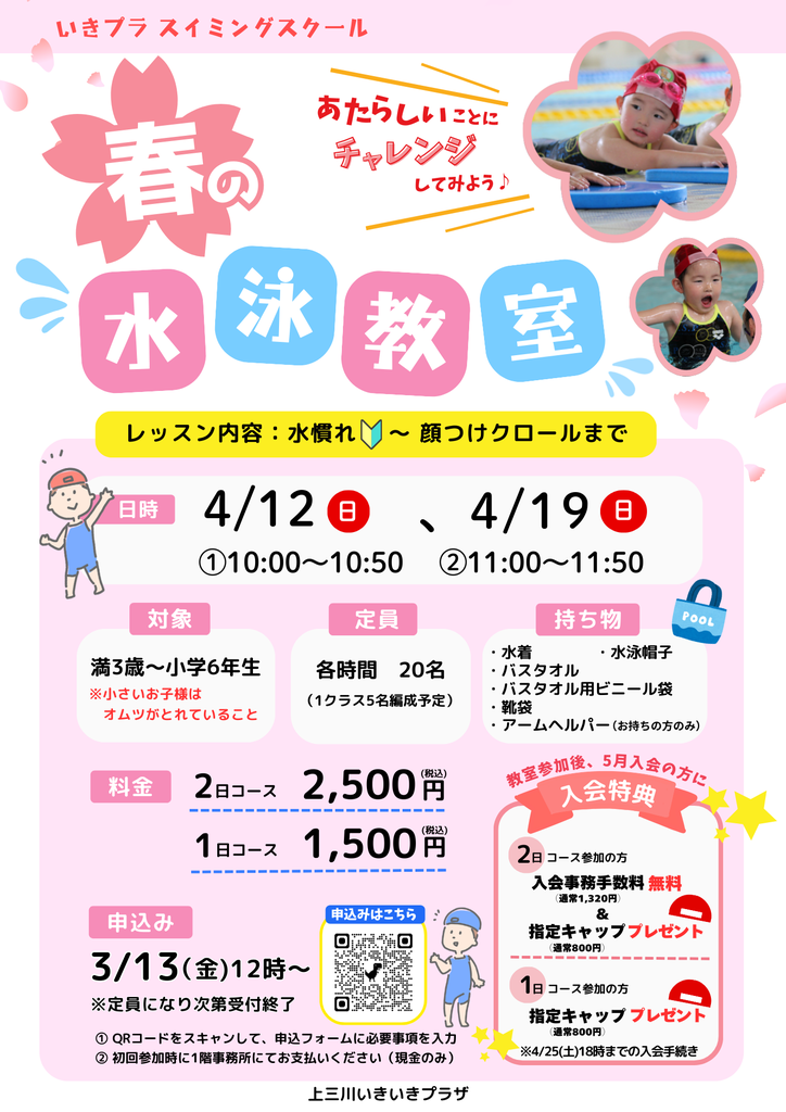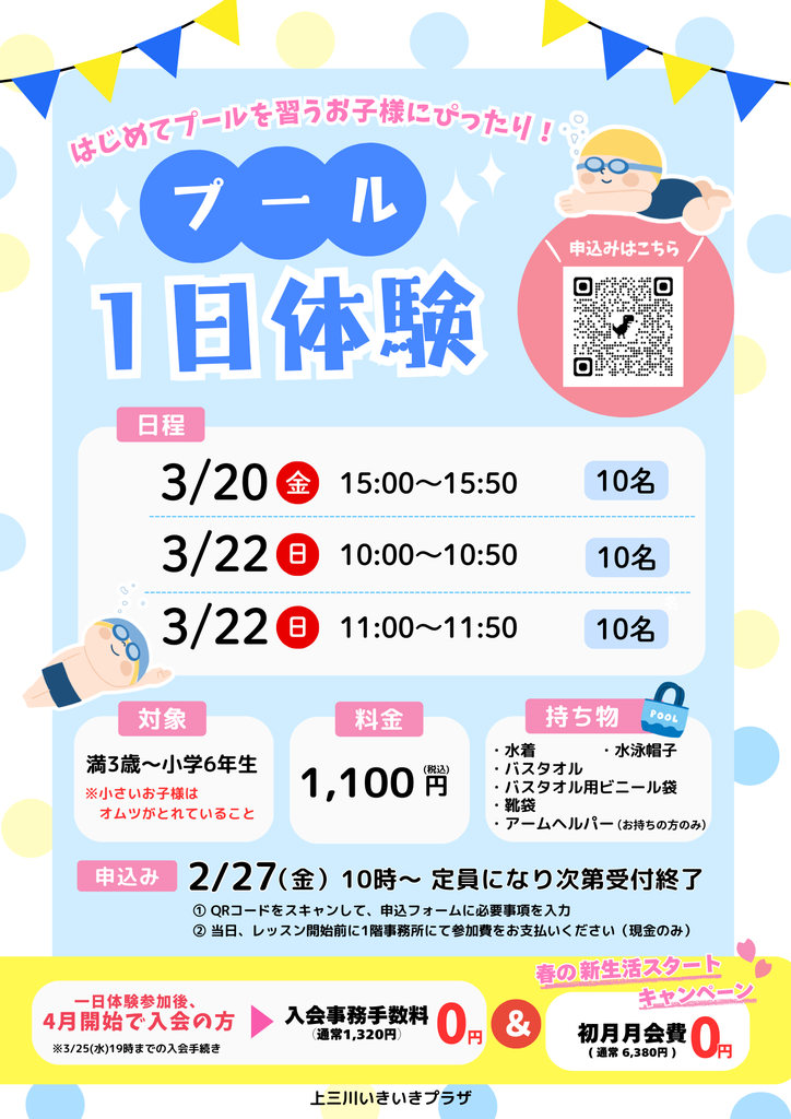 お知らせ 3月プール1日体験(26/03/09)