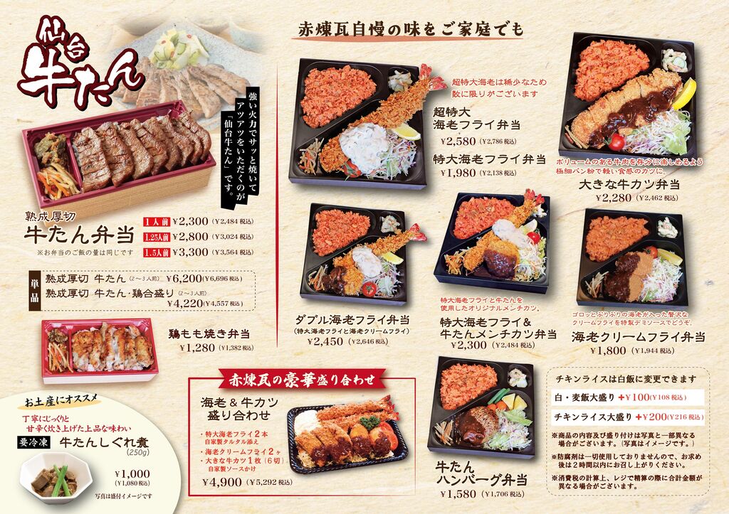 赤煉瓦のお味をご家庭で!テイクアウトお弁各種承ります!!(25/10/30)