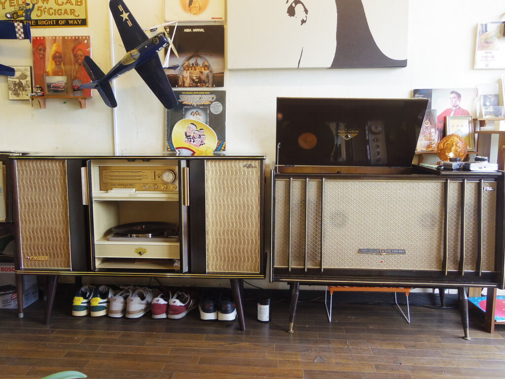 およそ、1960年代中盤くらいのビクター製のステレオで真空管式のモデルです。