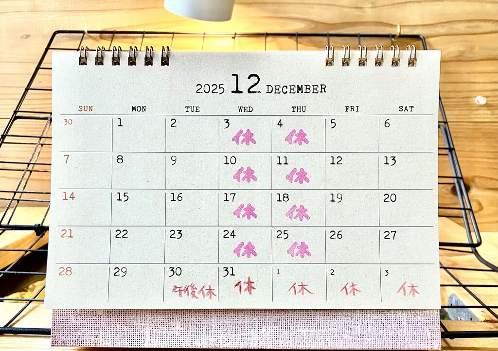 △▼ 12月のお休み ▼△ (25/12/02)