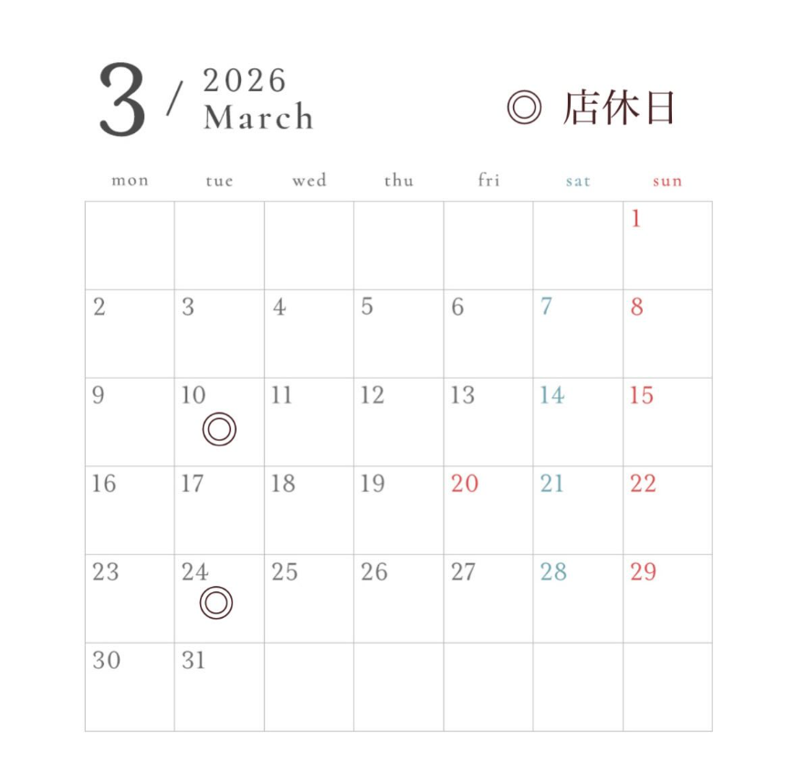 お知らせ *3月の営業カレンダー*(26/03/03)