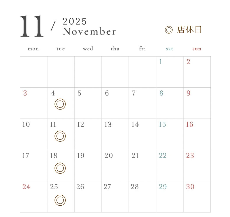 秋限定ニュース *11月の営業カレンダー*(25/11/01)