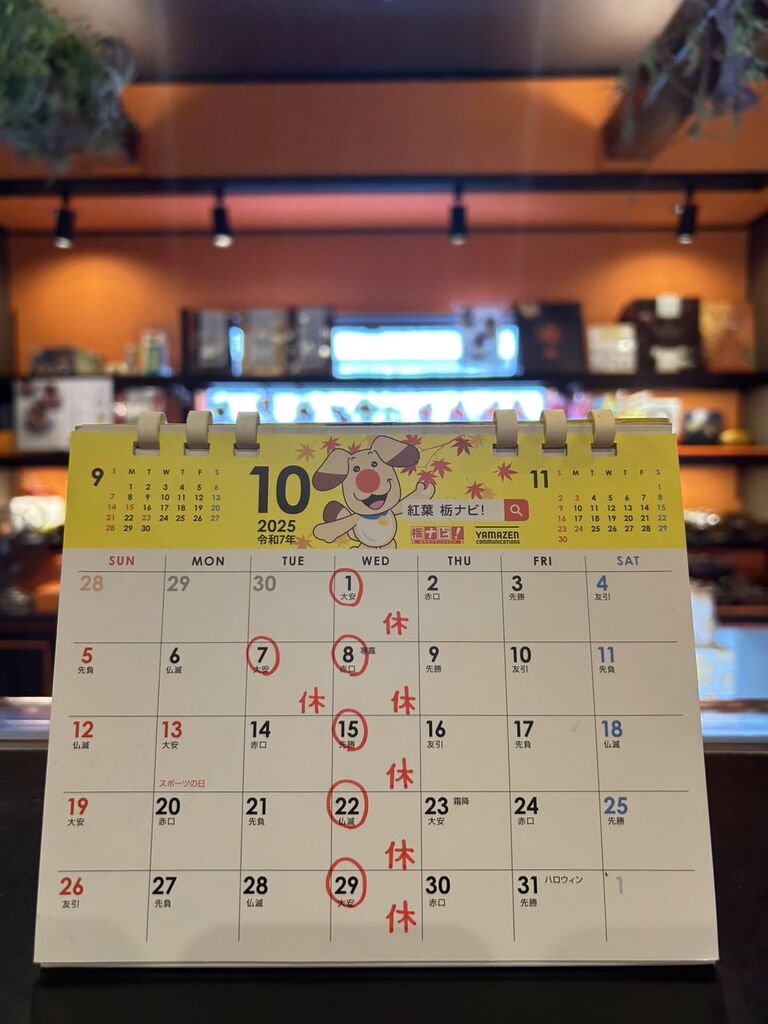 毎週水曜日のお休みの他、7日(火)がお休みとなります。